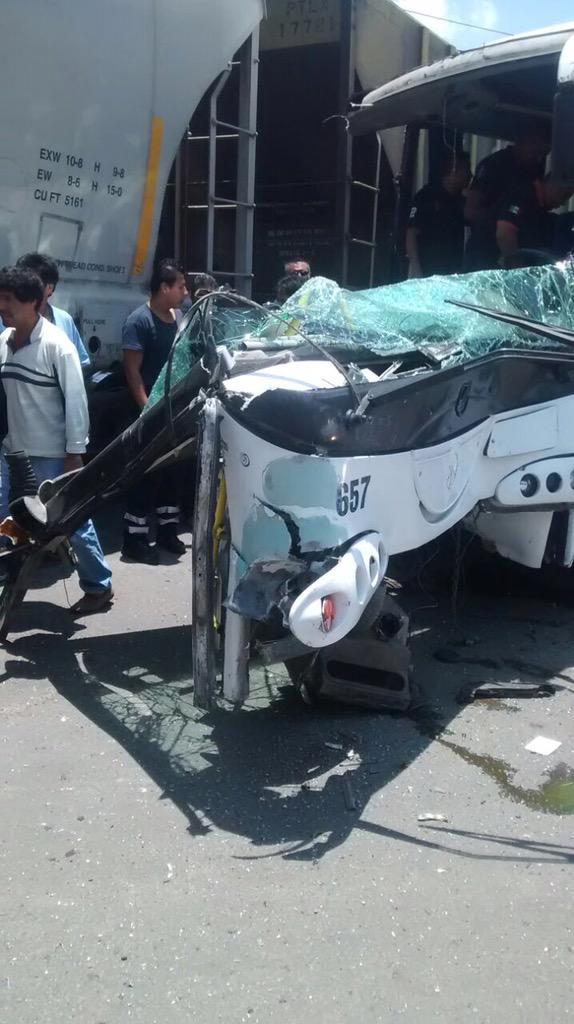 Por el momento se reportan dos personas lesionadas por este choque del tren con el autobús de pasajeros, pero esta cifra podría aumentar en los próximos minutos.