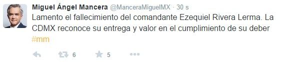 El jefe de Gobierno, Miguel Ángel Mancera, publicó un tuit en donde lamenta el fallecimiento del comandante: