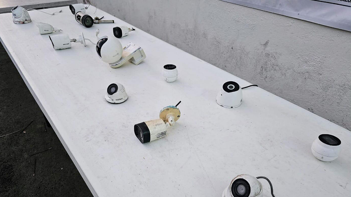Elementos del Grupo Interinstitucional retiraron y aseguraron 1 cámara PTZ inalámbrica y 16 cámaras fijas alámbricas.