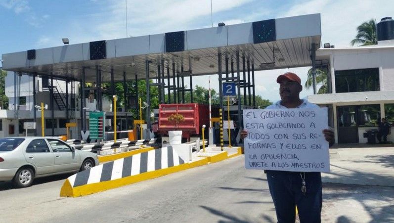 Otras de sus acciones este día fue realizar el tradicional boteo en las casetas del estado, por lo que se encontraban algunos integrantes de la CETEG pidiendo dinero en la Autopista del Sol.