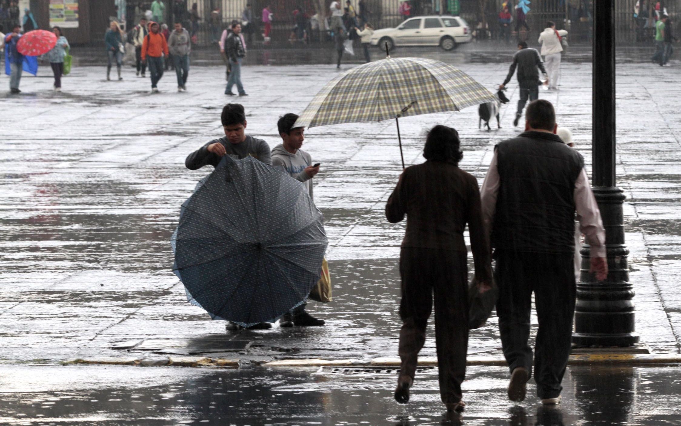 Para la Mesa Central continuará cielo medio nublado a nublado, 80 por ciento de probabilidad de precipitaciones fuertes en el Estado de México, Puebla y Guanajuato y menores en Querétaro, Hidalgo, Tlaxcala y Morelos, además de ambiente fresco por la mañana y cálidas a calurosas durante el día, con viento de dirección variable de 15 a 30 kilómetros por hora.