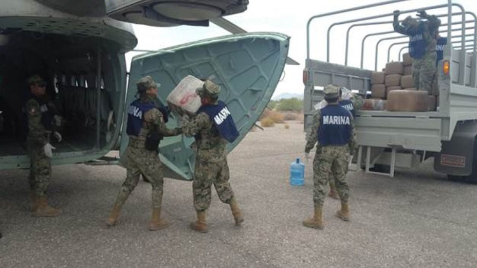 La Secretaría de Marina aseguró un cargamento de 1.4 toneladas de mariguana y 450 kilos de metanfetaminas que se hallaban presuntamente abandonados, en Puerto Peñasco, Sonora.