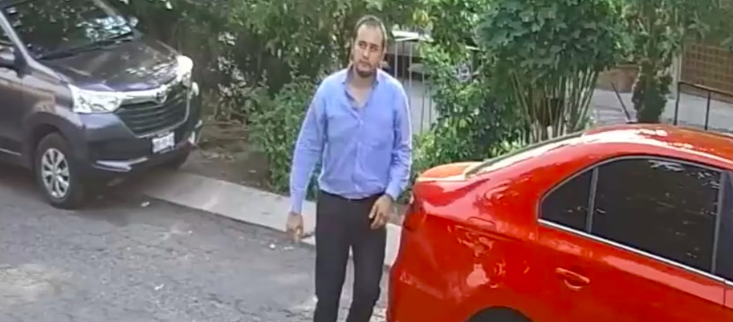 El hombre, que gracias a la grabación se identificó como Geovanny Domínguez, fue captado por cámaras de videovigilancia instaladas por los vecinos en la zona cuando baja de un vehículo color rojo y amarra a un perro en un árbol para después abandonarla.