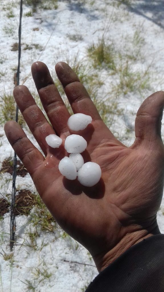 Habitantes de la ciudad informaron que el tamaño del granizo era de una pelota de golf mismo que provocó también abolladuras de los automóviles.
