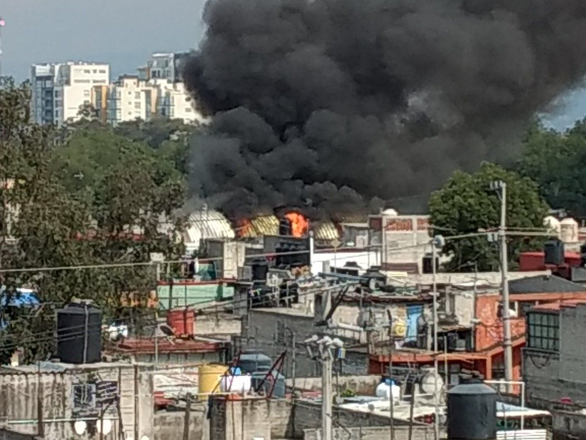 Una bodega que almacenaba madera en la delegación Coyoacán sufrió un fuerte incendio, mismo que fue rápidamente controlado por elementos del Heroico Cuerpo de Bomberos de la Ciudad de México.