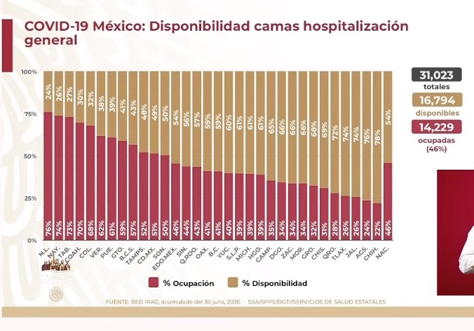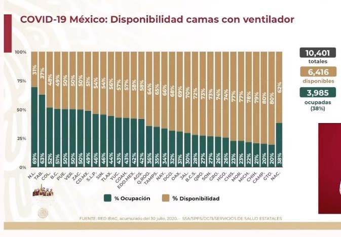 A nivel nacional la ocupación de camas de hospitalización general IRAG (Infección Respiratoria Aguda Grave) es del 46 por ciento, mientras que la de camas con ventilador es del 38 por ciento.