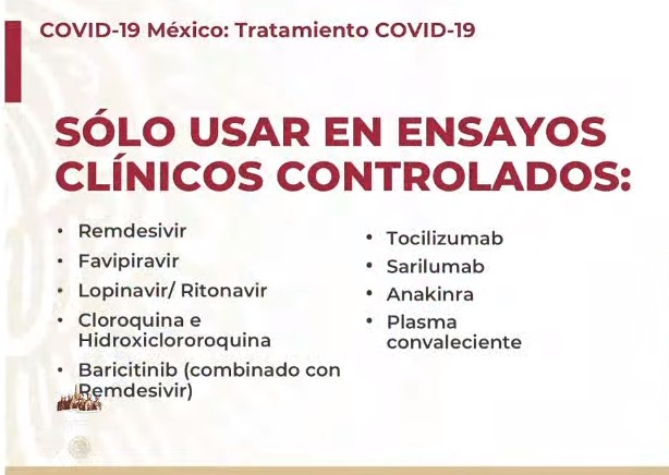La Secretaría de Salud reiteró que el tratamiento para personas con coronavirus debe basarse en evidencia científica de eficacia y seguridad apoyada por ensayos clínicos con metodología adecuada.