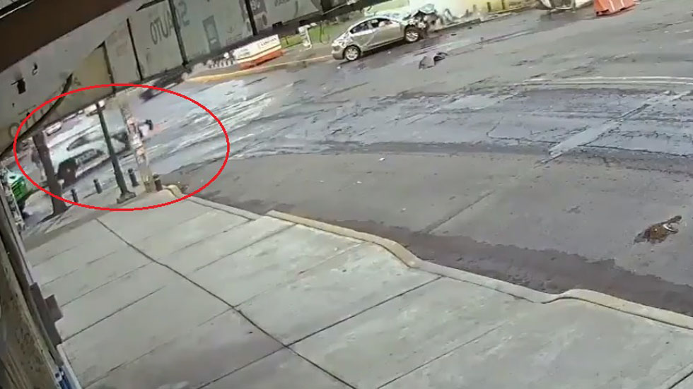 Una cámara de seguridad grabó el momento del impacto y cuando segundos después pasó a toda velocidad una patrulla de la Ciudad de México.