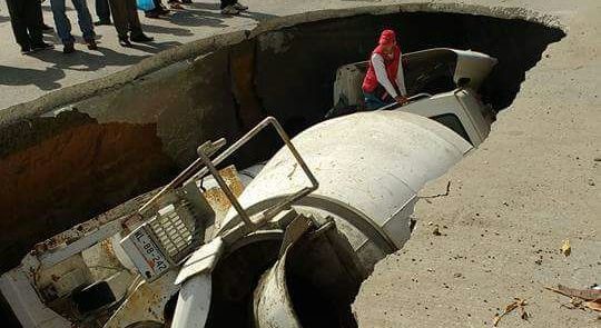 El incidente ocurrió a las 15:10 h del viernes, cuando el camión que transportaba mezcla de cemento se hundió en una calle de Ciudad Madero