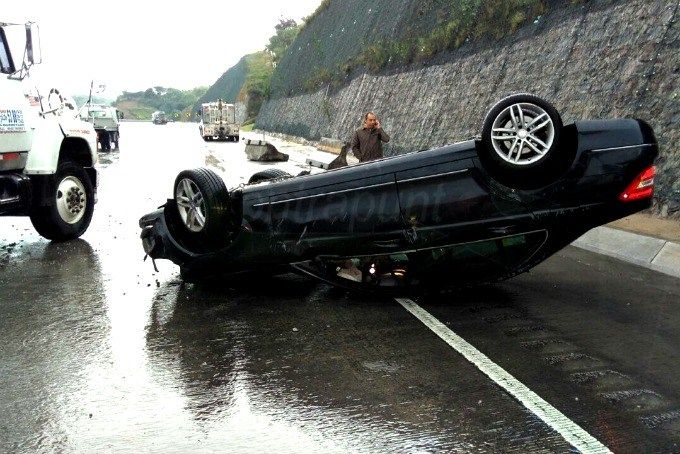 En la autopista México-Querétaro, un automóvil de lujo Mercedes Benz perdió el control debido a que viajaba a exceso de velocidad y terminó volcado, dejando como saldo a tres personas heridas.