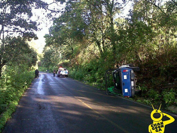 Elementos de la Policía Michoacán sufrieron un accidente vehicular la mañana de este martes en la carretera Coalcoman-Aquila.