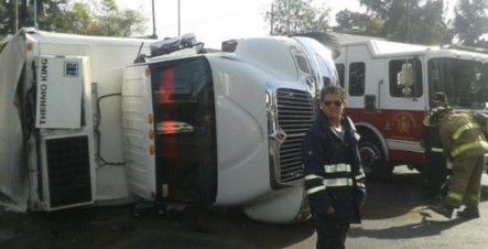 El vehículo con caja refrigerante volcó sobre su costado derecho aparentemente por el exceso de velocidad en que era conducido y al realizar una maniobra brusca al intentar dar vuelta.