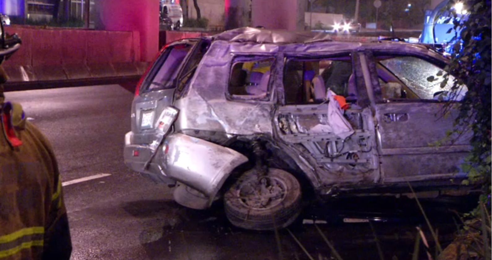 Una camioneta Nissan modelo X-Trail se volcó la noche del domingo en la planta baja del Anillo Periférico Sur, a la altura de avenida de Las Flores.