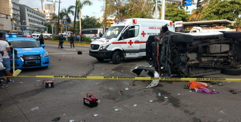 La volcadura de una camioneta dejó un saldo de un turista muerto y cuatro más heridos, tres de ellos mujeres, todos originarios de Ciudad de México, sobre la costera Miguel Alemán, a escasos metros del Zócalo del puerto de Acapulco.