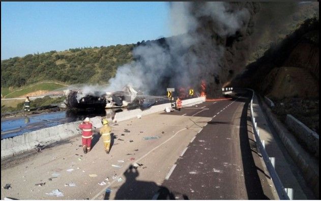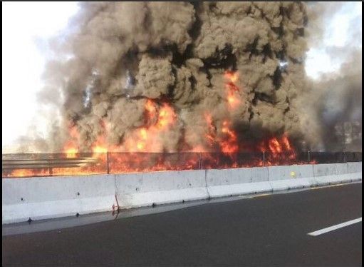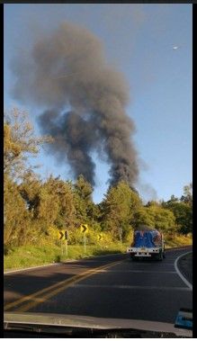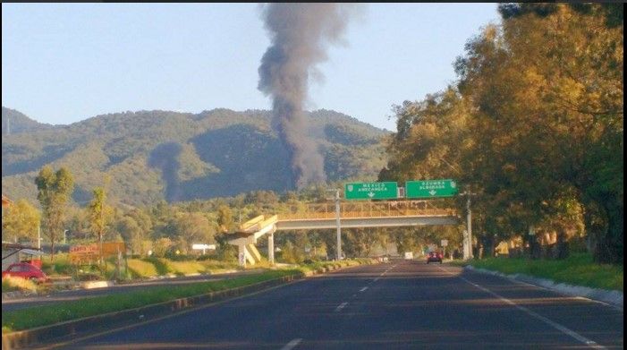 Esta mañana una pipa que circulaba por la Autopista Cuautla-Amecameca, en el kilómetro 49, volcó e incendió.