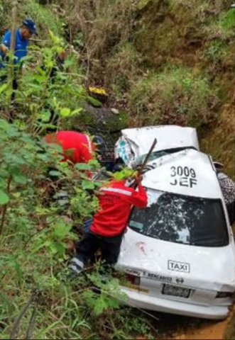 El taxi tipo Tsuru, con cromáticas azules, iba con destino a Temascaltepec, llevando a bordo dos mujeres y dos menores de edad, pero en la cerrada curva de La Pera, un camión de la línea Zinacantepec que viajaba a exceso de velocidad empujó al auto que perdió el control, por lo que se volcó en un precipicio, a unos 20 metros de altura.