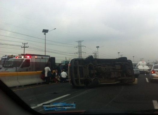 La mañana de este jueves, se registró la volcadura de una combi del transporte público en la Autopista México-Pachuca a la altura del kilómetro 14 en dirección hacia Indios Verdes.
