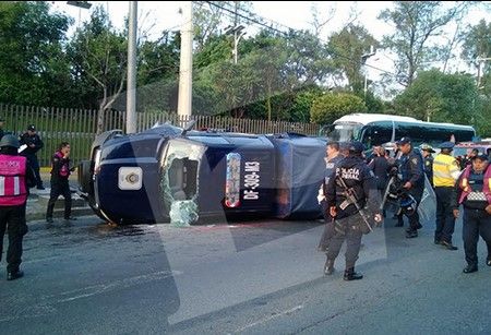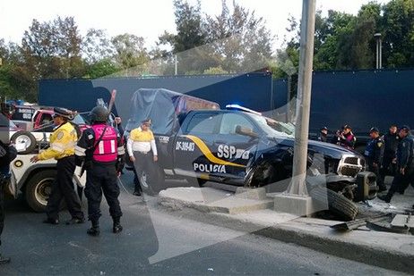 En los límites de las delegaciones Álvaro Obregón y Miguel Hidalgo, la patrulla con número DF309M3 de la Secretaría de Seguridad Pública del Distrito Federal (SSPDF) volcó, dejando a dos oficiales heridas.