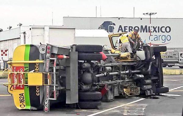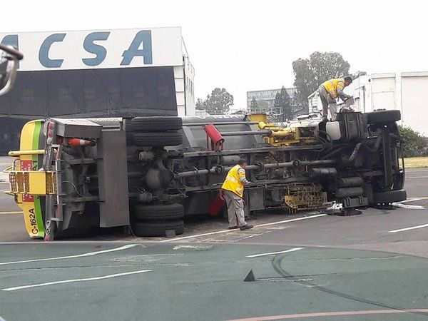 Se vuelca unidad de traslado de combustible en una de las vialidades internas del aeropuerto. Sin embargo no afectó las operaciones