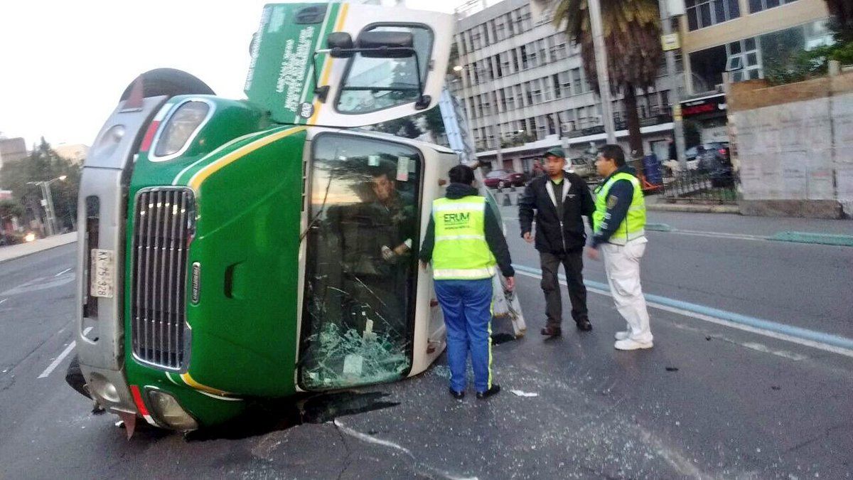 Aproximadamente a las 7:40 h de este martes se reportó la volcadura de una pipa con cinco mil 800 litros de gas sobre la Avenida Chapultepec, en la delegación Cuauhtémoc en la Ciudad de México.