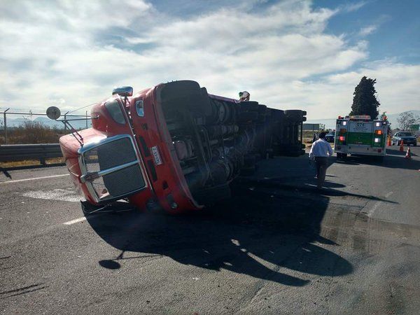 Este lunes, la volcadura de un tráiler en el Circuito Exterior Mexiquense provocó complicaciones de tránsito en la vialidad.