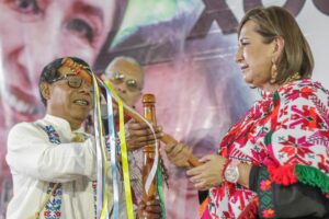 Indígenas de San Luis Potosí entregaron un bastón de mando a la candidata de la oposición, Xóchitl Gálvez Ruiz