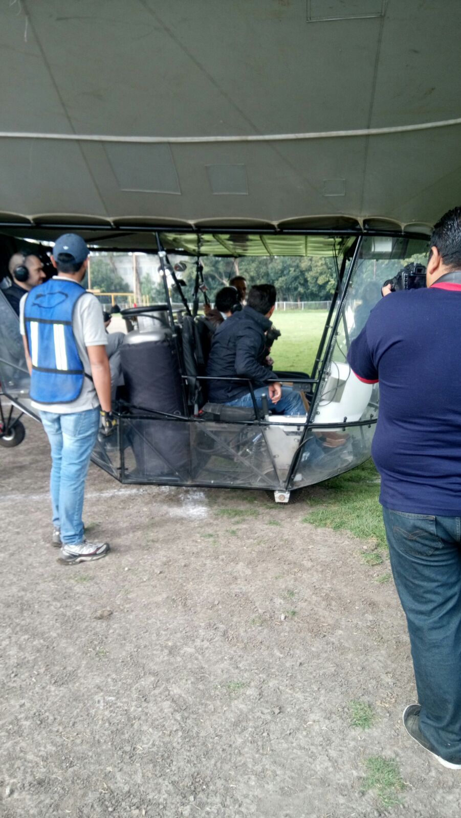 En la muestra del servicio, realizada en el campo de futbol americano de los Red Skins de Lomas Verdes, un grupo de seis personas, entre ellas el piloto, periodistas y personal de Cabify ingresó al dirigible.