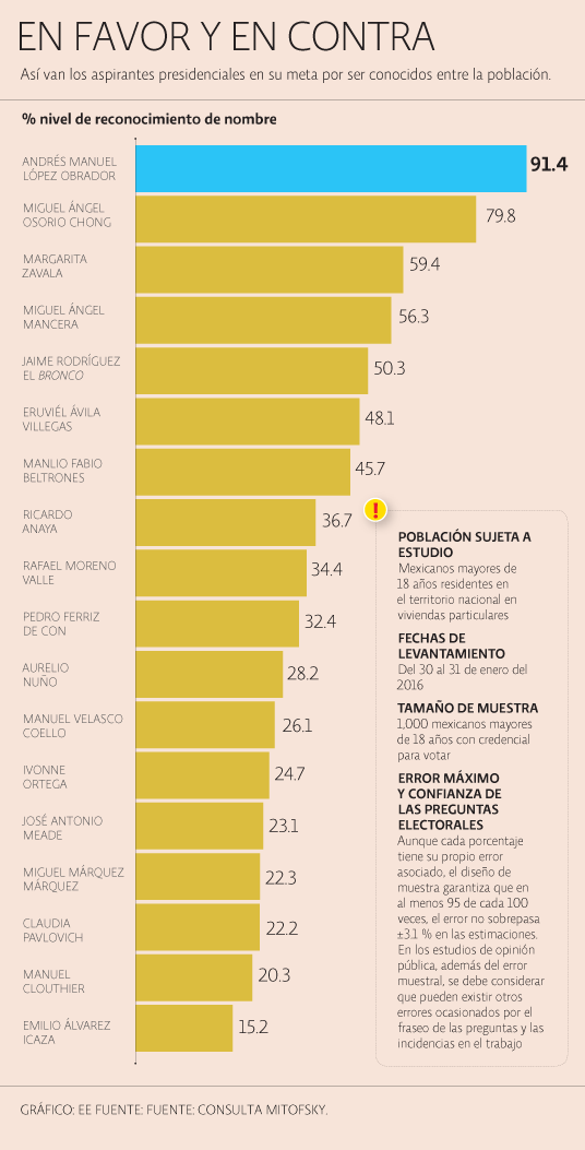 Consulta Mitofsky aclara que ser “reconocido” no representa ser “popular”, y sólo significa que se está presente en pláticas y análisis, y en ello se pueden tener opiniones negativas que también influirán en las decisiones de los partidos.
