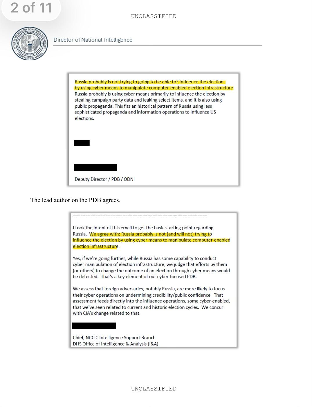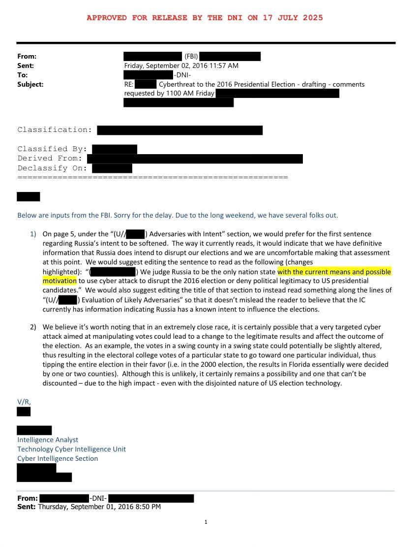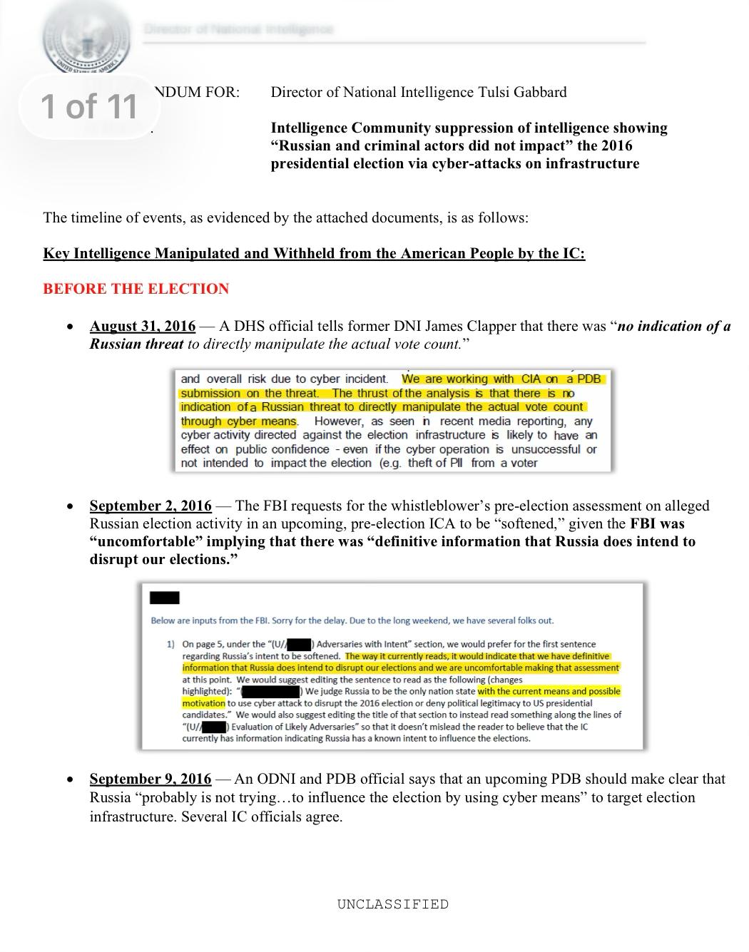 La información difundida y destacada por la directora de Inteligencia, Tulsie Gabbard, fue más rápidamente difundida por los medios de comunicación rusos que por medios estadounidenses.