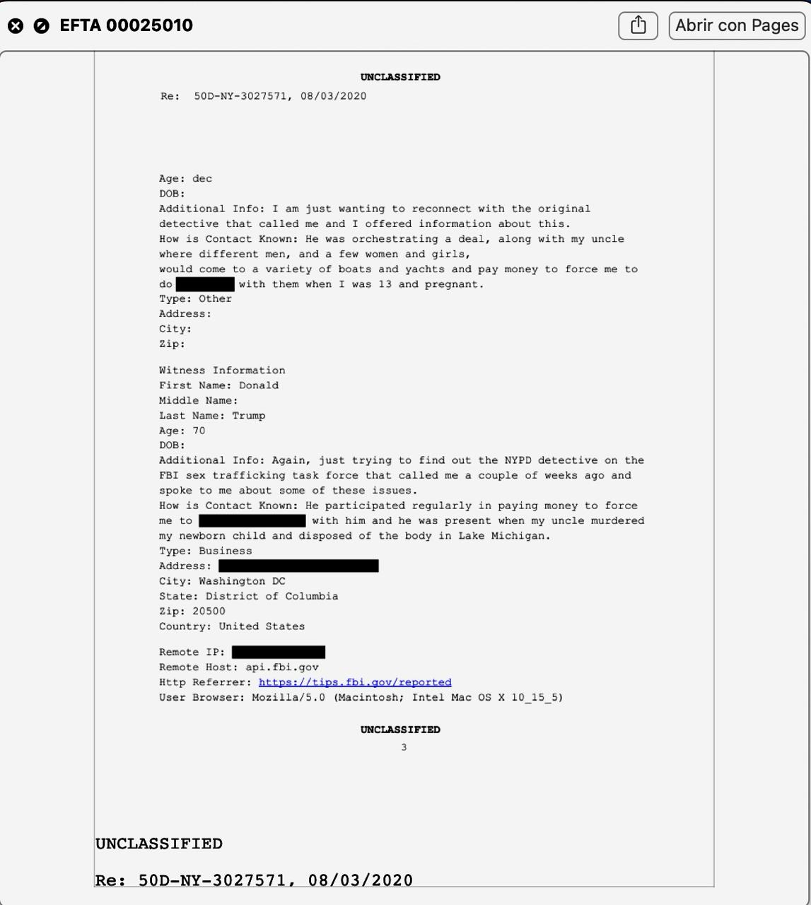 Aunque aún no se le implica en abusos contra menores, los documentos difundidos revelan la intensa relación de Trump y Epstein, sus contactos, fiestas y aficiones, desde 1980, las fiestas a las que asistían y su gusto por las mujeres jóvenes y hermosas, de acuerdo a la modelo Stacey Williams, una de al menos 20 mujeres acosadas por el ahora presidente.