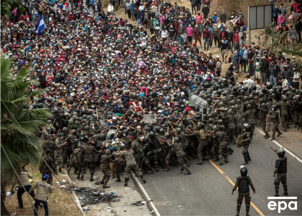Los soldados en Guatemala no dejan pasar a quienes vienen de Honduras a principios de año, pero bien podríamos ubicarla en México mientras que nuestra Guardia Nacional los reprime en el estado de Chiapas.