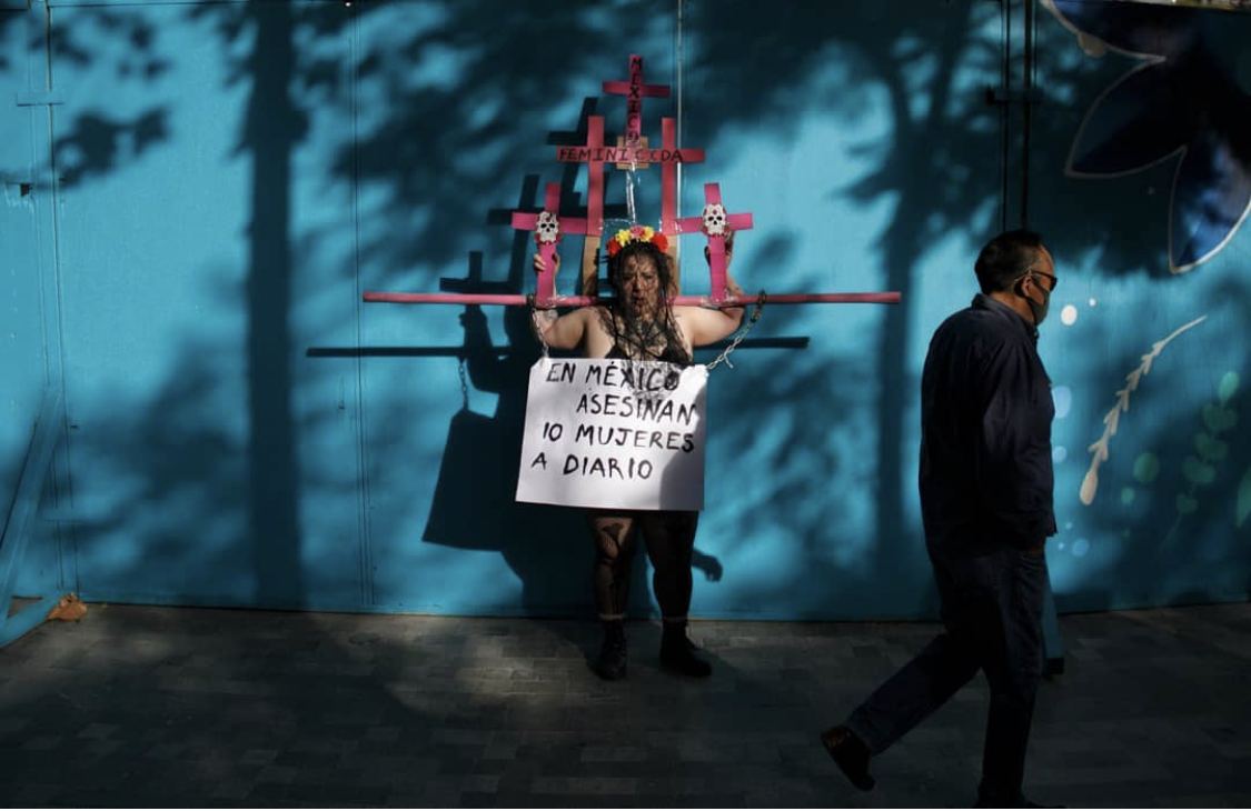 ¿Pero qué cree? 10 mujeres asesinadas a diario, suman una cantidad de 3 mil 650 mujeres por año y el señor que viste de color oscuro, con un cubrebocas y lentes de sol, representa a la sociedad de un país como el nuestro.