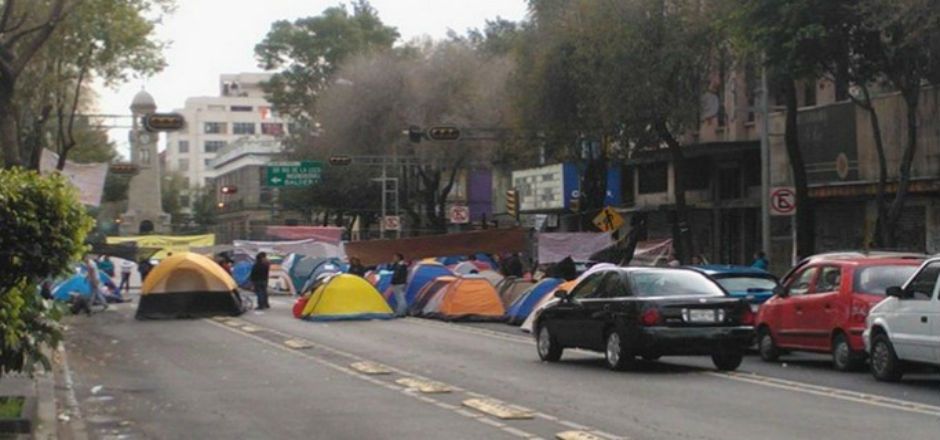 Unos 150 integrantes de la Coordinadora Nacional de Trabajadores de la Educación (CNTE) han instalado un plantón sobre el Eje 1 Poniente, Bucareli, justo en frente de donde se encuentra la Secretaría de Gobernación.