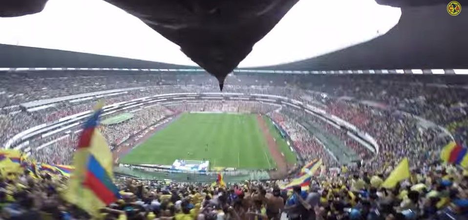 Durante el partido del América contra los Pumas de la UNAM, el equipo azulcrema colocó una cámara GoPro en el pecho de su mascota ‘Celeste’ que es un águila real, para que captara las imágenes de su vuelo por el estadio.