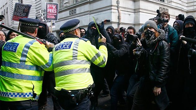 Miles de estudiantes que se manifestaron hoy en Londres contra las medidas de austeridad del gobierno y los recortes educativos, terminaron enfrentándose con la policía.