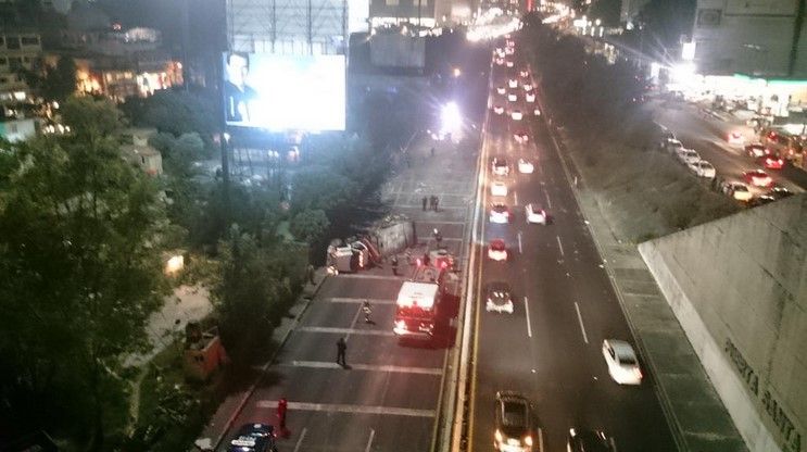 Este viernes desde la tarde el tráfico de la carretera México-Toluca se ha visto aletargado en dirección hacia el Distrito Federal debido a la volcadura de un tráiler a la altura de Puerta Santa Fe.