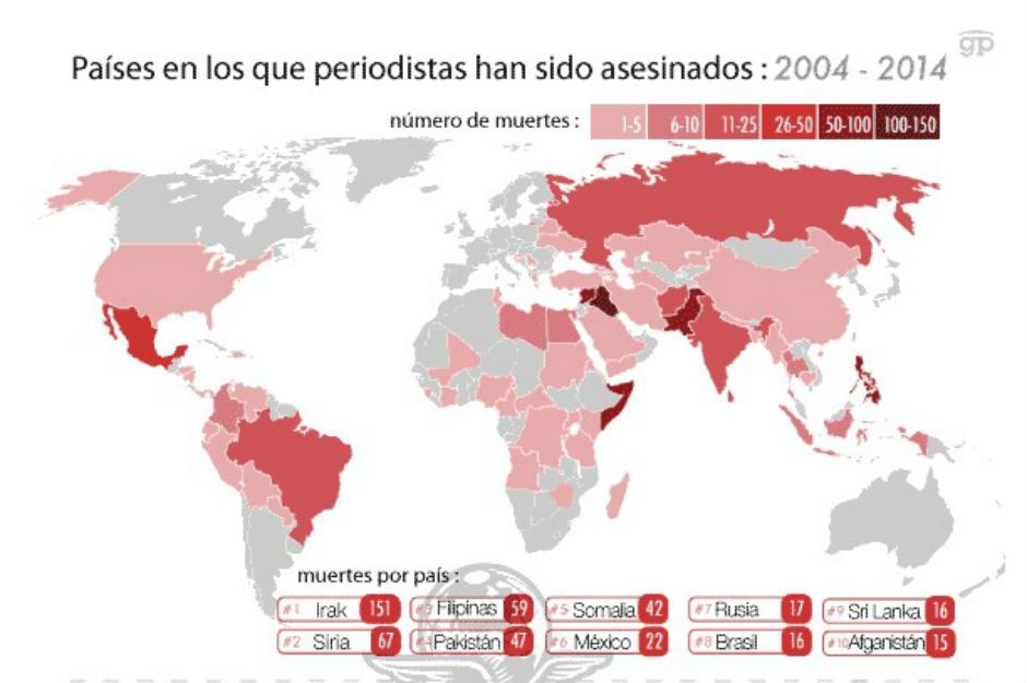 Para el caso específico de México, CPP indica que en una década 22 periodistas han sido asesinados por motivos directamente relacionados por su labor en los medios de comunicación. Mientras que en ese mismo periodo, 38 periodistas más han muerto por causa distinta a su trabajo.