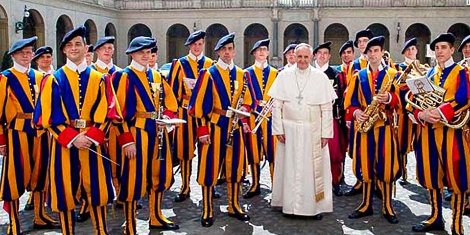 Todos ciudadanos suizos católicos, los soldados de la Guardia Suiza están encargados de la vigilancia y el orden en el pequeño territorio del Vaticano, garantizando la seguridad del Sumo Pontífice además de ayudar diariamente a los turistas y peregrinos que visitan sus jardines, museos y la basílica de San Pedro.