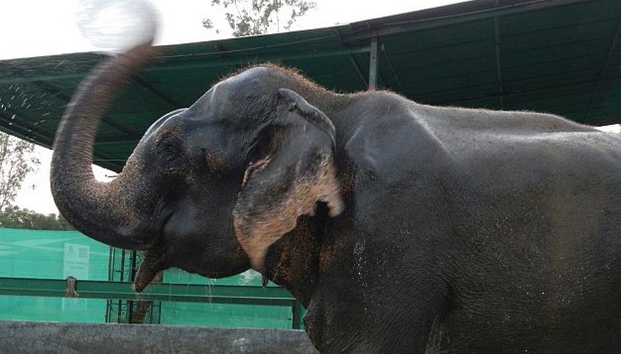 Ahora que Raju ya está libre, se ha convertido en un elefante menos deprimido y está recuperando su salud progresivamente; ya se le puede ver en chapoteaderos disfrutar del agua y bañarse.