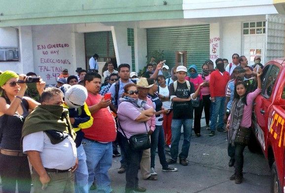Los maestros de la CETEG cerraron las oficinas e informaron a los trabajadores del instituto electoral que en Guerrero no quieren jornada electorales, sino el regreso con vida de los 42 normalistas desaparecidos en Iguala desde el 26 de septiembre.