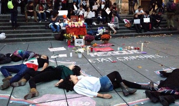 17:30 horas, Tijuana, Baja California, en el Monumento a Cuauhtémoc, en la Zona Río, la convocatoria para manifestarse por la aparición con vida de los normalistas.