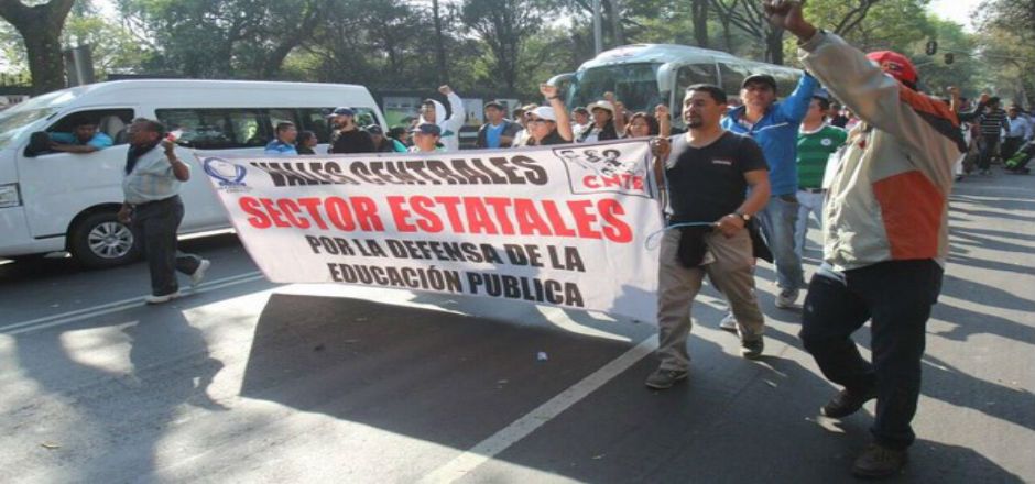 La movilización que agrupa profesores de Oaxaca, Baja California, Chiapas, Veracruz y Michoacán demanda la presentación de los 43 normalistas de Ayotzinapa y el esclarecimiento de la investigación, así como la abrogación de la Reforma Educativa.