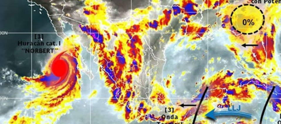El Centro Nacional de Huracanes en Miami informó el domingo que el vórtice de Norbert seguía alejándose de la costa de México y se ubicaba a unos 275 kilómetros (170 millas) al suroeste de Punta Eugenia, en el centro de la península mexicana. Se movía al oeste-noroeste a una velocidad de 13 kph (8 mph).