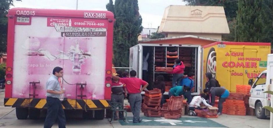 Ahí los manifestantes terminaron de bajar toda la mercancía de los camiones repartidores y hasta el momento no han informado qué van a hacer con los productos.
