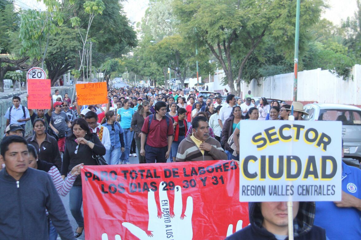 A la convocatoria realizada a nivel nacional para exigir la presentación con vida de los 43 normalistas desaparecidos en Iguala, Guerrero el pasado mes de septiembre, se sumaron organizaciones sociales y la Sección 22 del Sindicato Nacional de Trabajadores de la Educación (SNTE), quienes durante la mañana realizaron cierre de carreteras, tomas de centros comerciales y el cierre del aeropuerto internacional “Benito Juárez” de Oaxaca, entre otras protestas en la entidad.