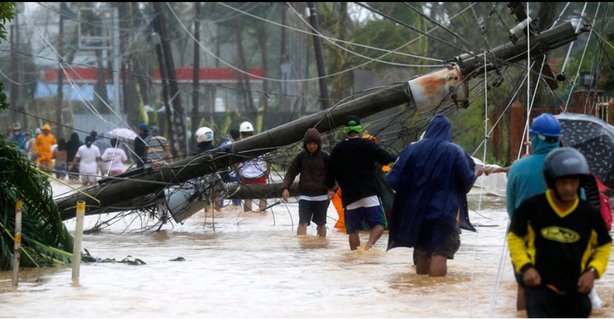 Varias localidades azotadas por el tifón se quedaron incomunicadas al caer las líneas telefónicas y eléctricas, indicó el secretario de bienestar, Dinky Soliman.