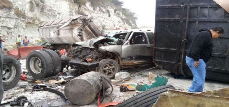 Los automóviles involucrados en este percance son una camioneta particular y un vehículo pesado.