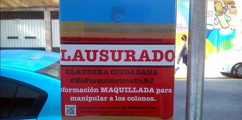 Vecinos de las delegaciones Benito Juárez, Coyoacán, Cuauhtémoc y Tlalpan formaron el Frente Ciudadano Contra los Parquímetros en el Distrito Federal, como parte de su protesta contra la instalación de estos aparatos en las colonias de estas demarcaciones.