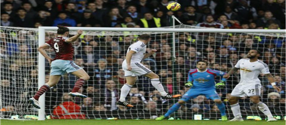 Carroll anotó su primer diana de la campaña para empatar el marcador por el West Ham a los 41 minutos, con un remate de cabeza que venció al arquero del Swansea, Lukasz Fabianski, tras pase cruzado de Carl Jenkinson.