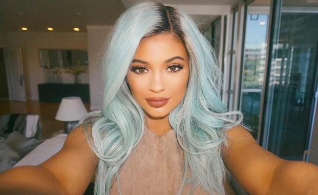La joven hermana de Kim Kardashian, Kylie Jenner cambió su oscura cabellera por un tono azul pastel.